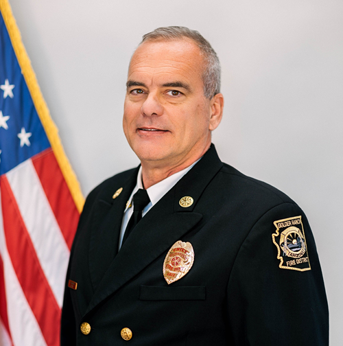 Brad Bradley began his service with the Northwest Fire District in 1999, and became fire chief on July 1, 2018. He holds a degree from Andrew Jackson University in emergency medical services, and has completed the Arizona State University Fire Service Institute in Management and Leadership. Chief Bradley has received numerous honors throughout his career, including a Certificate of Appreciation from the Arizona Governor’s Office, First Responder of the Year, and a Certificate of Special U.S. Congressional Recognition.